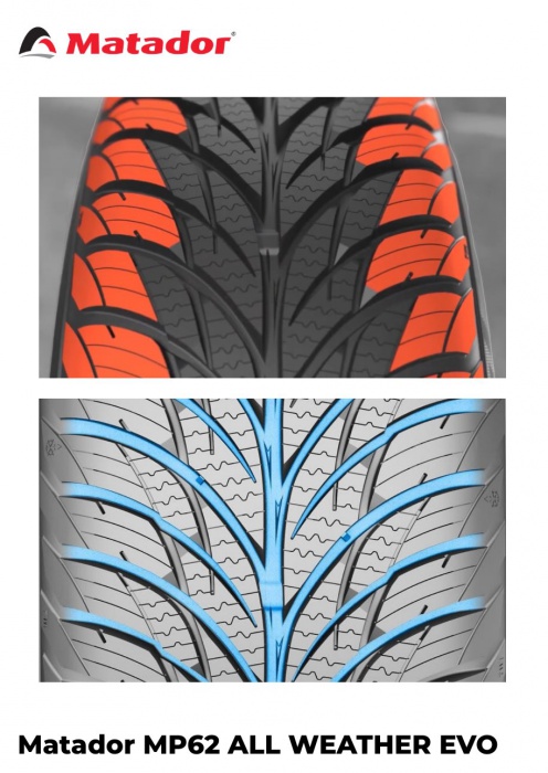 Matador MP62 All Weather Evo je cenovo výhodná celoročná pneumatika, ktorá ponúka spoľahlivý záber v zime a stabilný výkon v lete. Ideálna voľba pre vodičov, ktorí chcú jazdiť celý rok bez prezúvania.